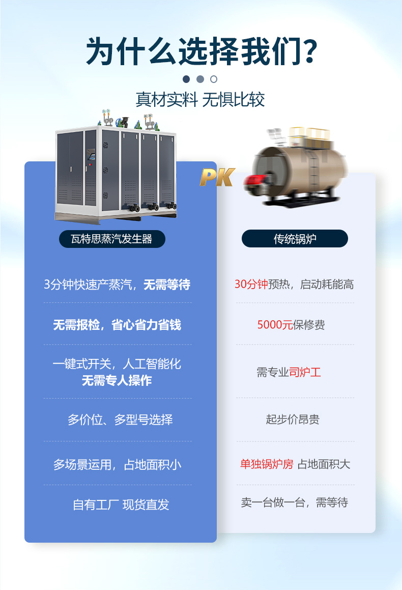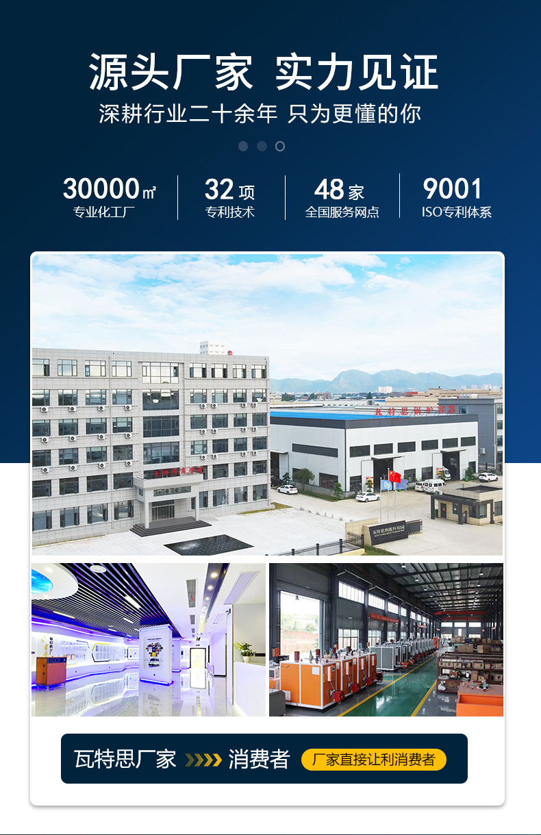 - 瓦特思是一家集热能研发、生产、销售、服务于一体的蒸汽发生器厂家,主营电蒸汽发生器、全自动蒸汽发生器、燃油燃气蒸汽锅炉、电加热蒸汽发生器等,价格实惠,绿色环保,高效节能。